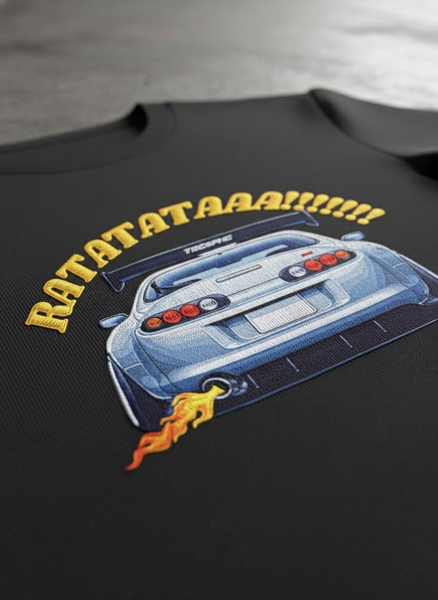 Supra inspired 240 gsm T-Shirts with embroidery print on the front and DTF print on the back.
